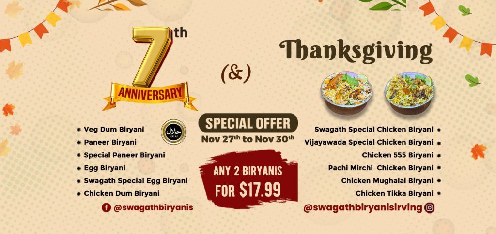 Come to experience authentic Hyderabadi Biryanis at Irving and Frisco location. Our style of cooking using spices and home made recipes brings back those memories that you cherish for life. We go by the motto “Athidi Devo Bhava” putting our customers first and guaranteeing unique dining experiences – delicious food, friendly atmosphere and exceptional customer service.